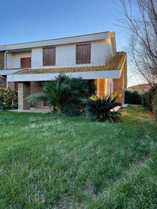 Villa Bifamiliare con ampio giardino, così composta: grande soggiorno, sala da pranzo, cucina abitabile, 1 camera matrimoniale, 2 camerette doppie e 2 bagni. Portici e doccia esterna.